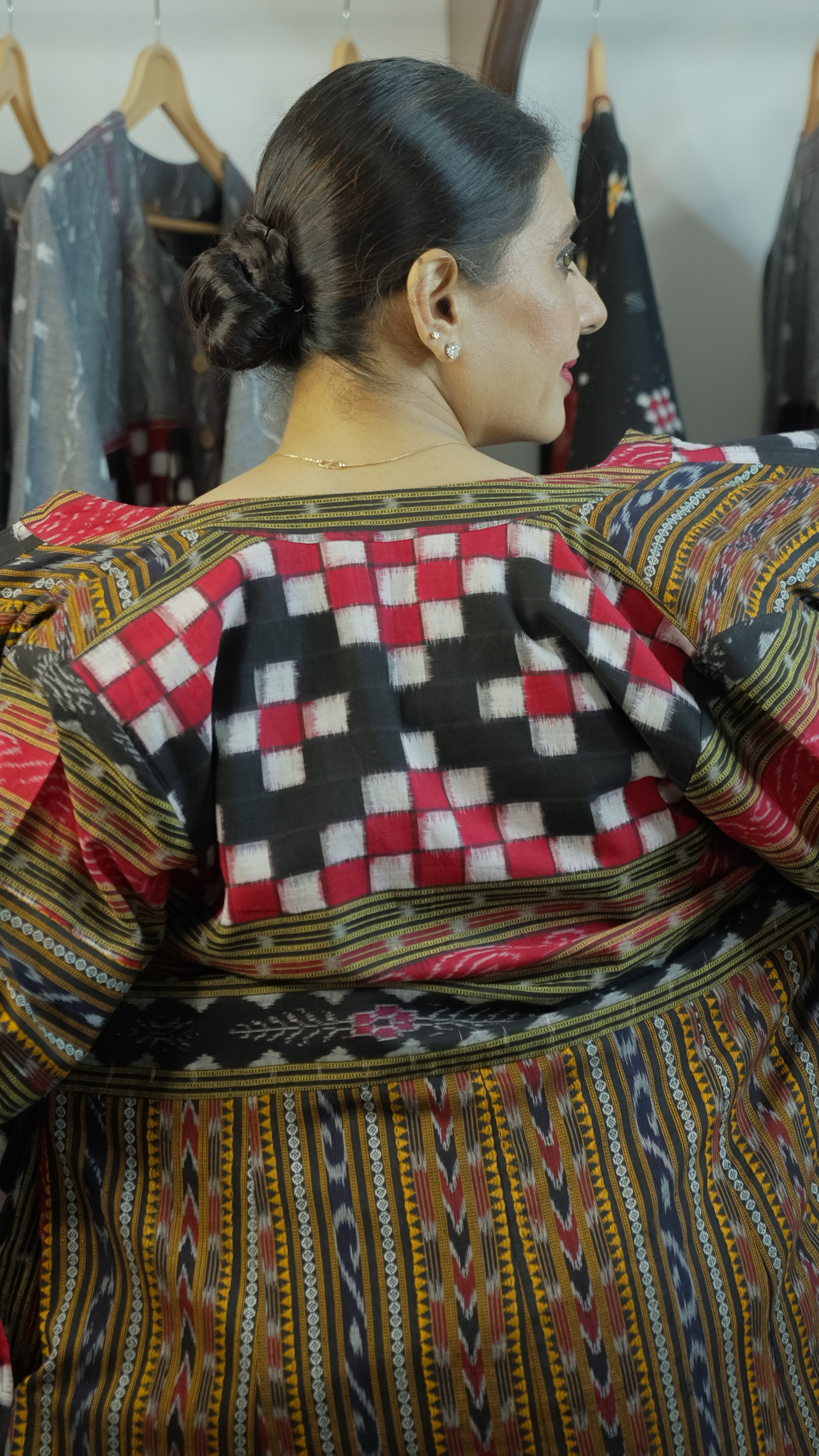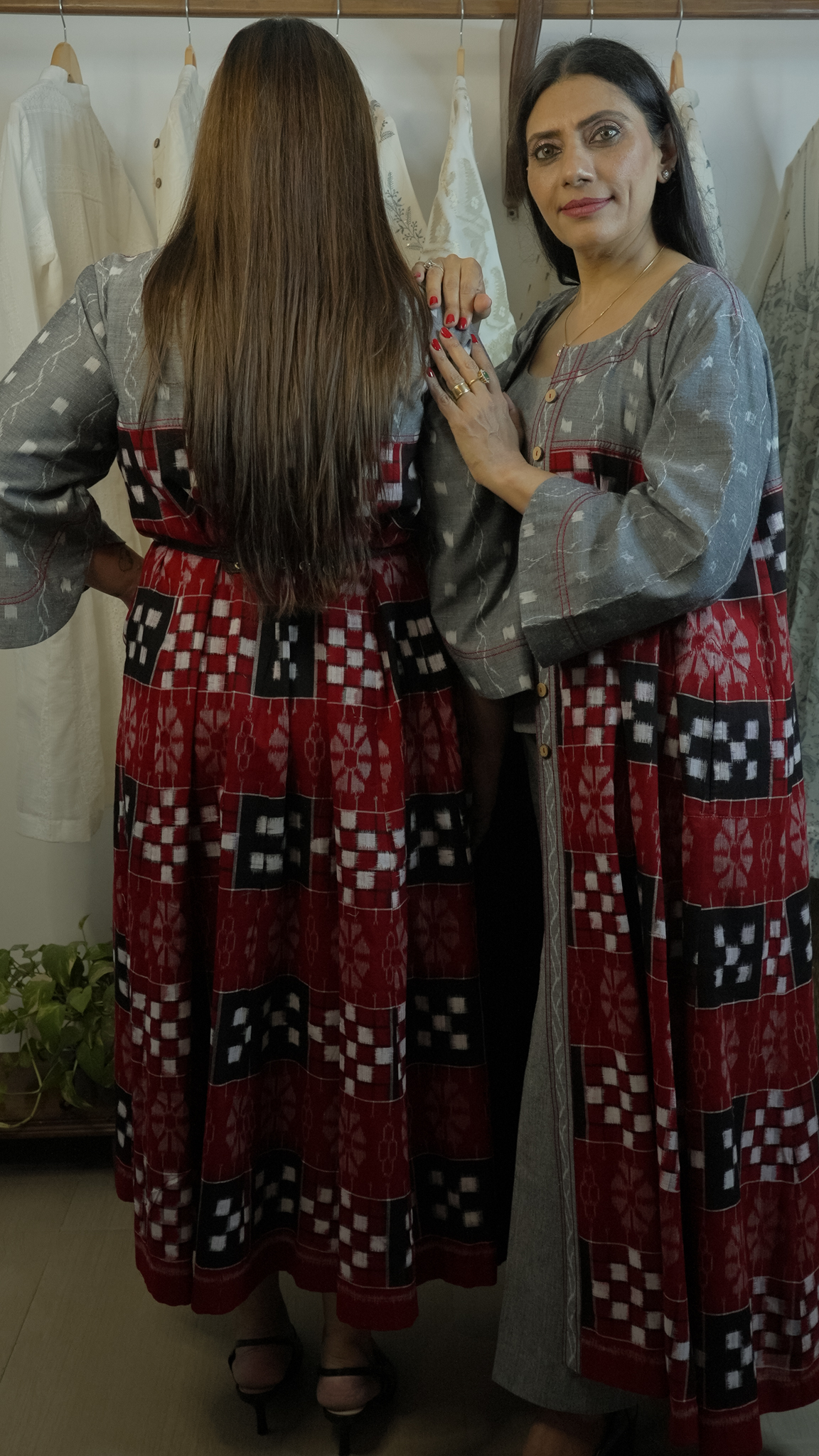 Ikat Long Tunic Jacket with thread work – Handloom Red & Black