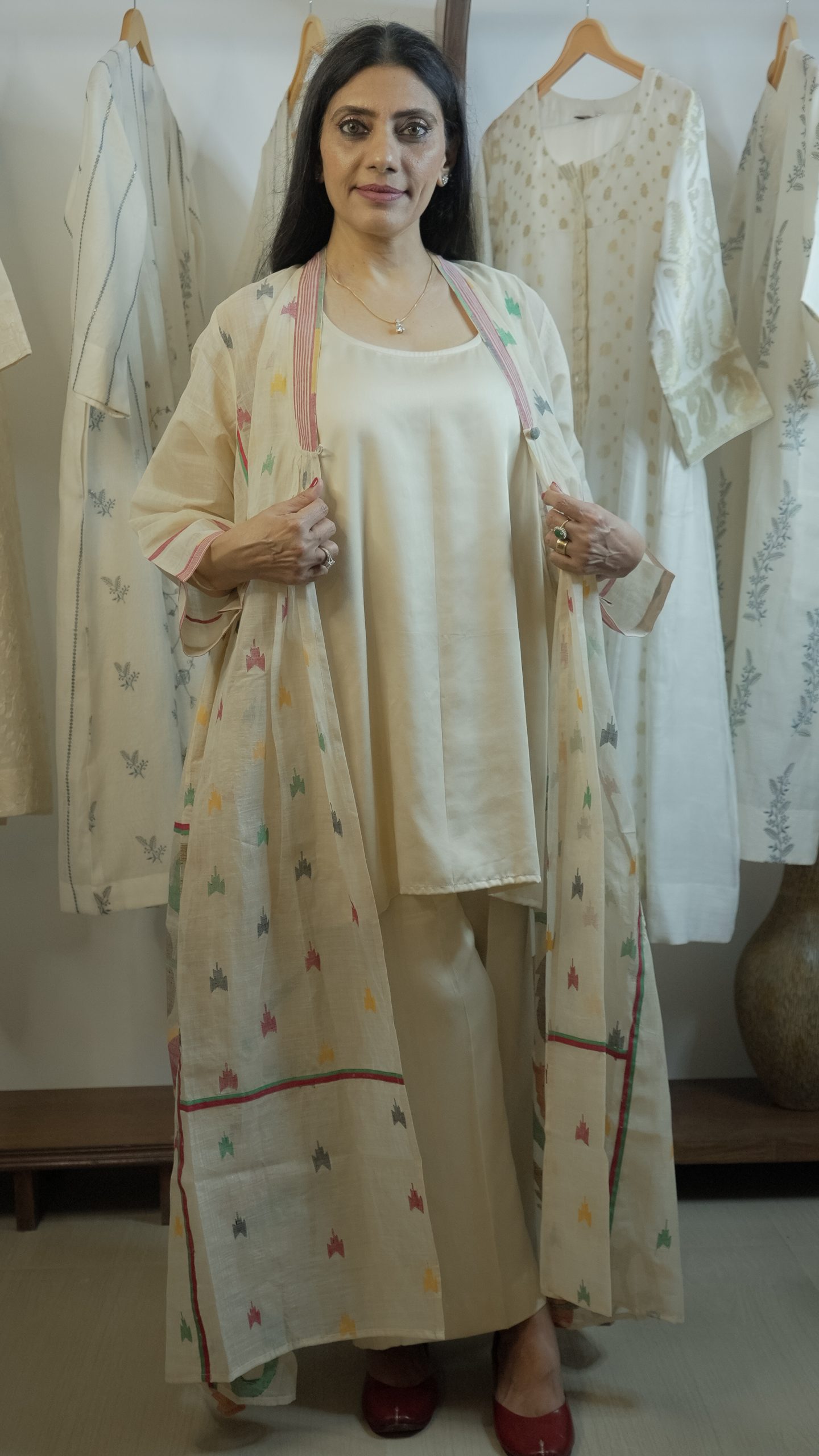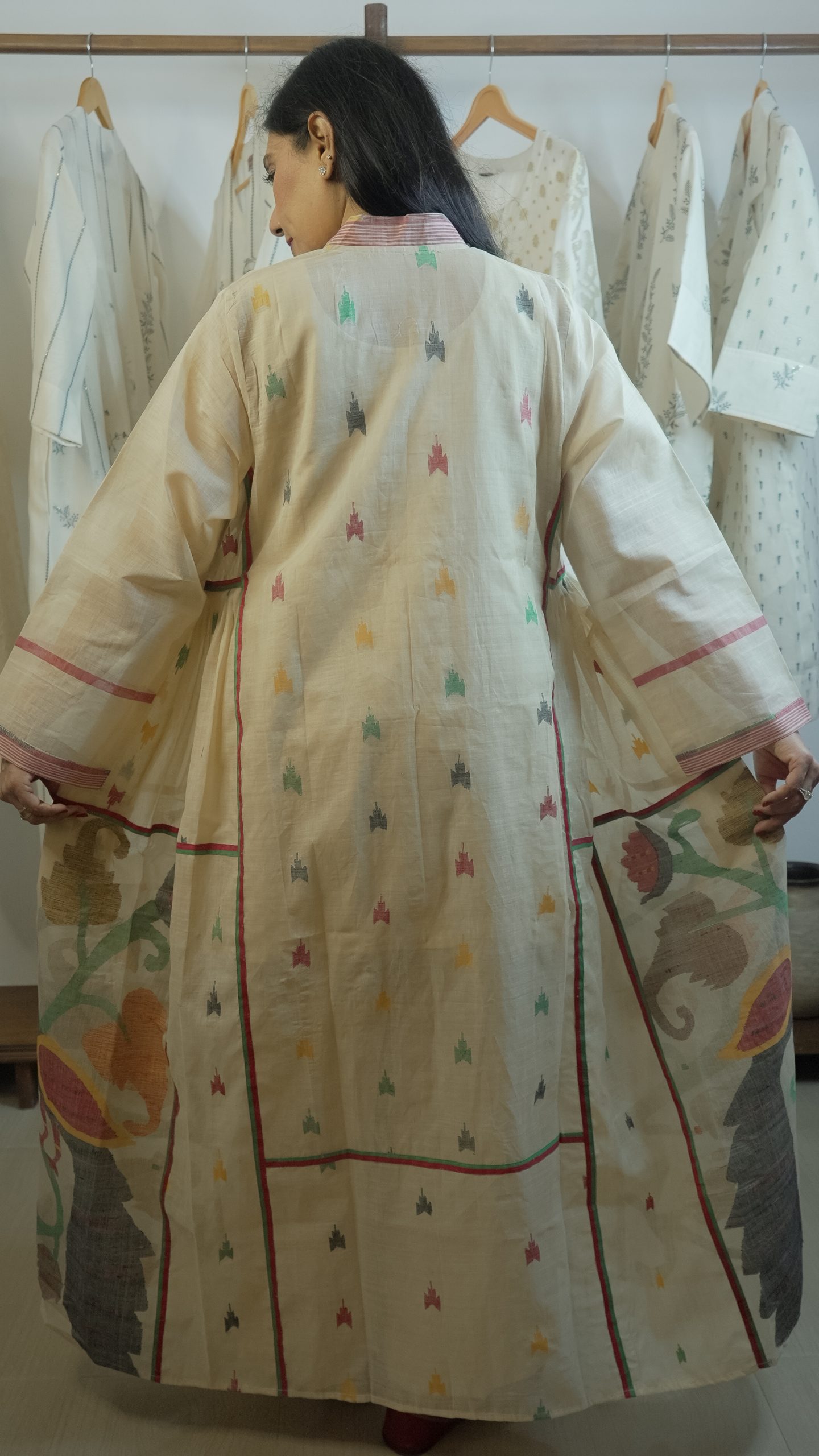 Crafted with sustainability in mind, our Jamdani supports local weaving communities and preserves the heritage of generations. Whether worn for festive celebrations or styled for modern minimalism, it brings together tradition, artistry, and effortless sophistication.