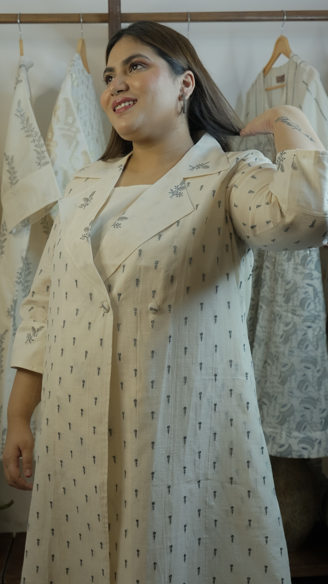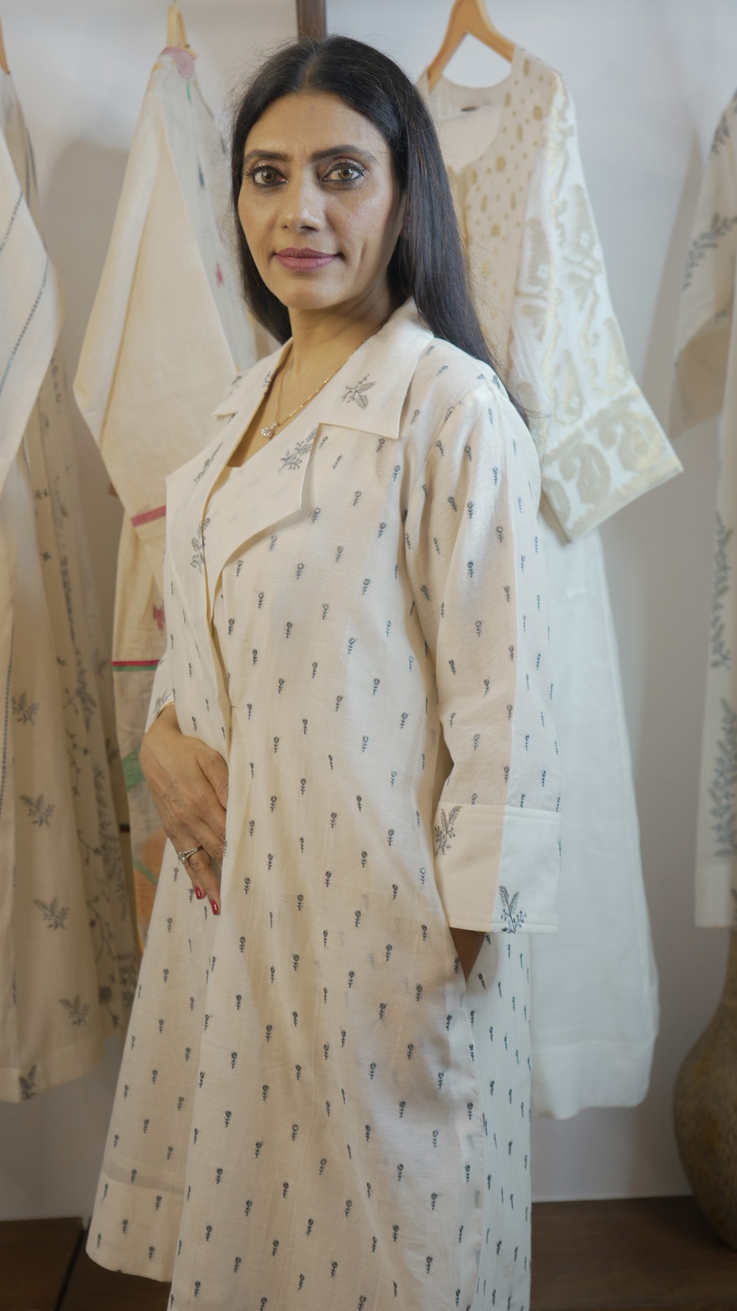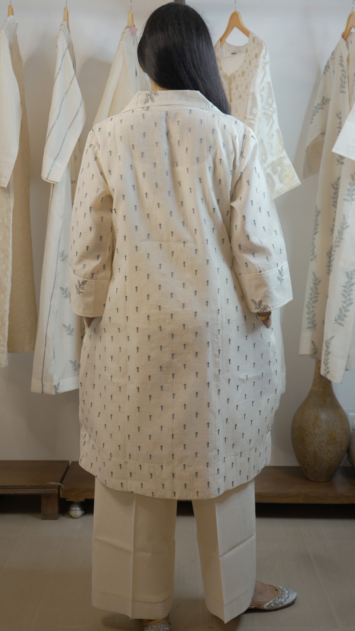 Mul Chanderi grey embroided collared jacket with Mul Chanderi inner and pants set (3 piece set)