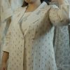 Gently hand wash in warm water to preserve the delicate embroidery and the fabric’s lightweight elegance.